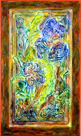 Iris Abstract II Published August 1, 2016 at 267 × 448 Iris Abstract II – 2010 – Mixed media on upcycled MDF door – 17″ x 28″ Gifted