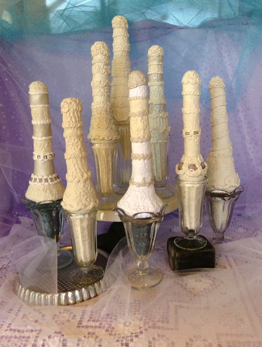 Cakes! Published August 28, 2016 at 982 × 1300 in Clay Concoctions ← Previous Next → Wedding Cakes – 2016 – Polymer clay in upcycled glassware – various sizes ….more details to come!