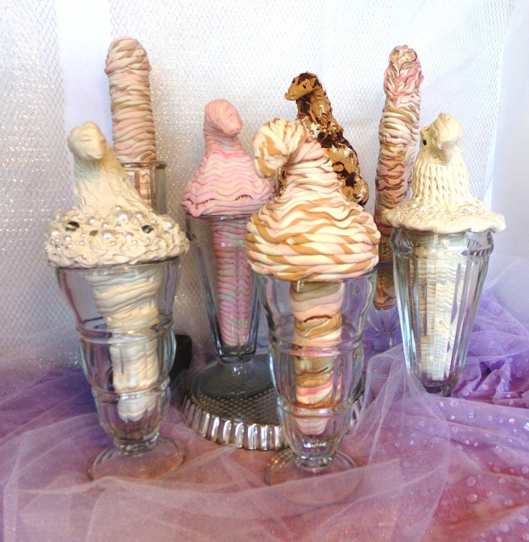Ice Cream Soda Treats! Published August 28, 2016 at 768 × 786 in Clay Concoctions ← Previous Next → Ice Cream Sodas – 2016 – Polymer clay in upcycled glassware – various sizes ….more details to come!