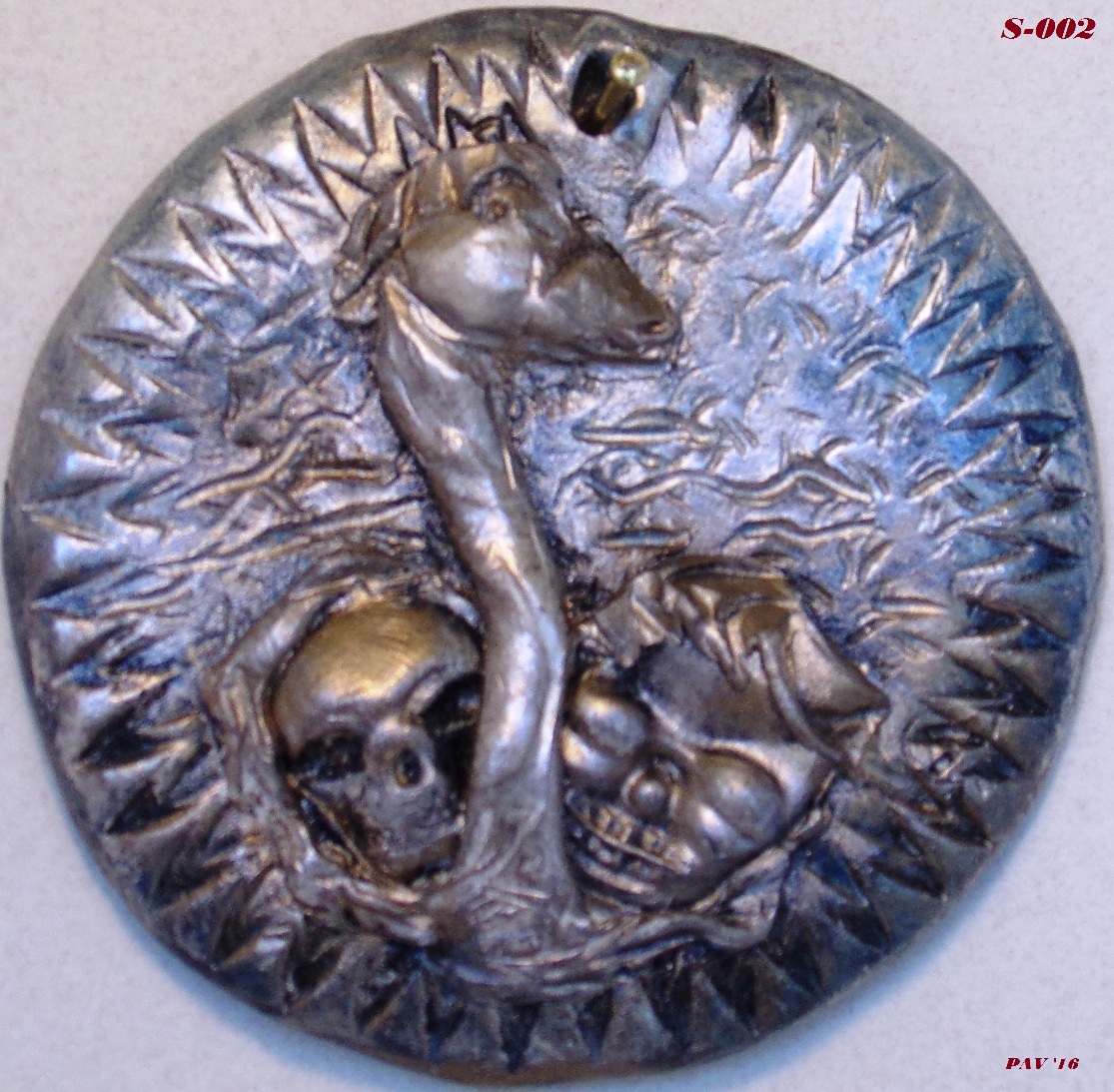 Spectercle T-Swan S-002 Published August 25, 2016 at 1115 × 1093 in Pendants & Medallions ← Previous Next → Spectercle T-Swan S-002 – 2016 – Polymer clay – 2 3/4″ Sorry Trumpeter Swan for getting you involved in my name game: Trump-Peter Swan….a wig-wearing fowl floater!