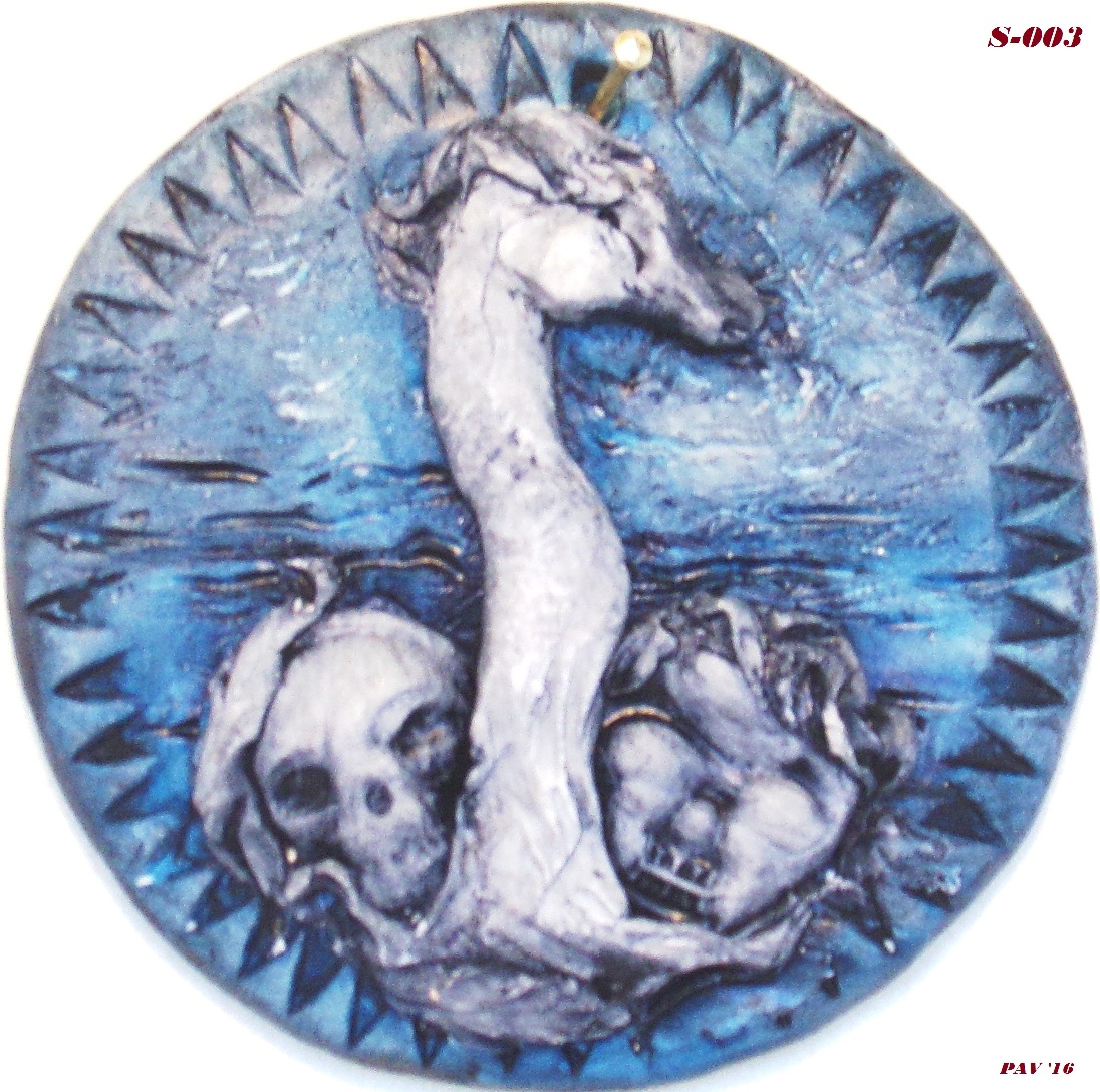 Spectercle T-Swan S-003 Published August 25, 2016 at 1096 × 1088 in Pendants & Medallions ← Previous Next → Spectercle T-Swan S-003 – 2016 – Polymer clay – 2 3/4″ The Scary One: This pendant is sporting the acrylic undertone (no gold wax)….perhaps it should be called ‘Spooktercle’!