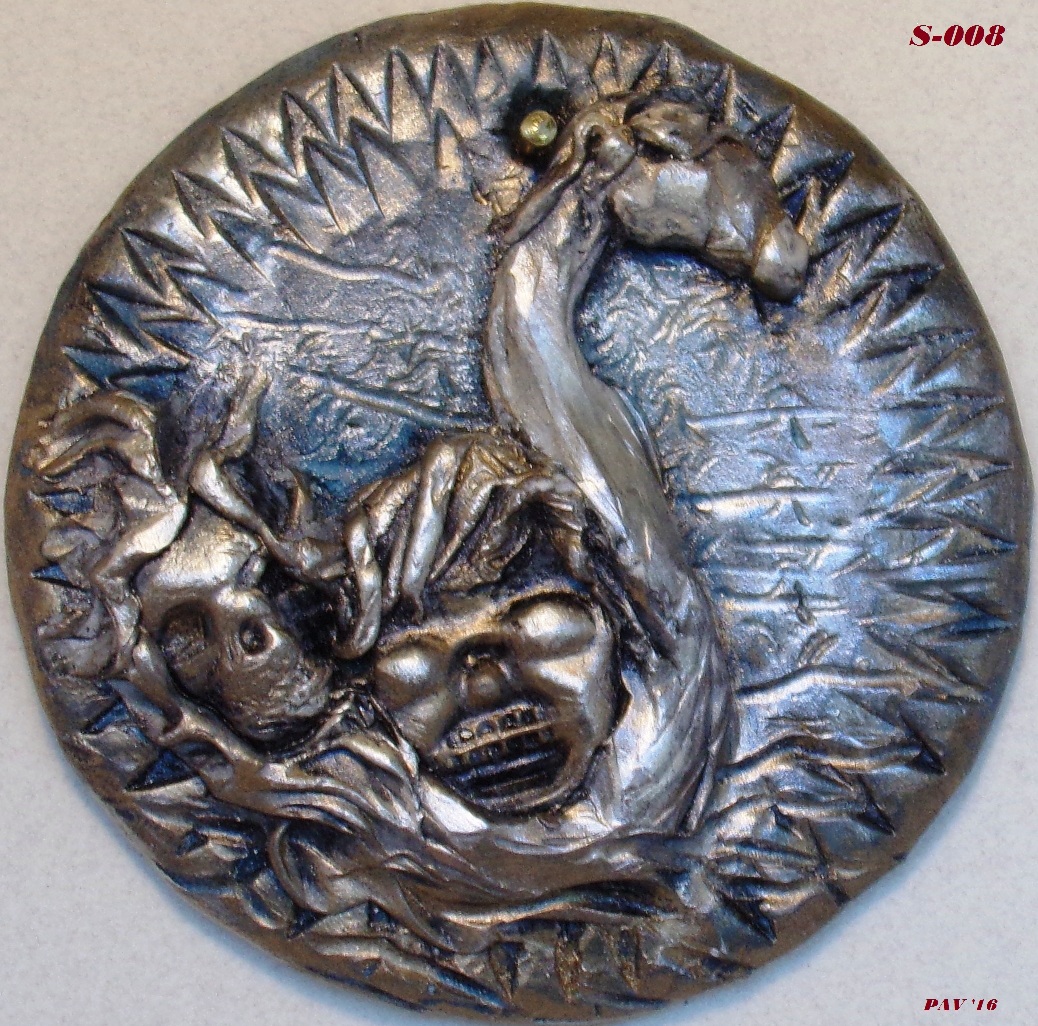 Spectercle T-Swan S-008 Published August 25, 2016 at 1038 × 1026 in Pendants & Medallions ← Previous Next → Spectercle T-Swan S-008 – 2016 – Polymer clay – 2 3/4″ Trump-Peter Swan….a wig-wearing fowl floater ….travelling incognito as a Trojan horse!