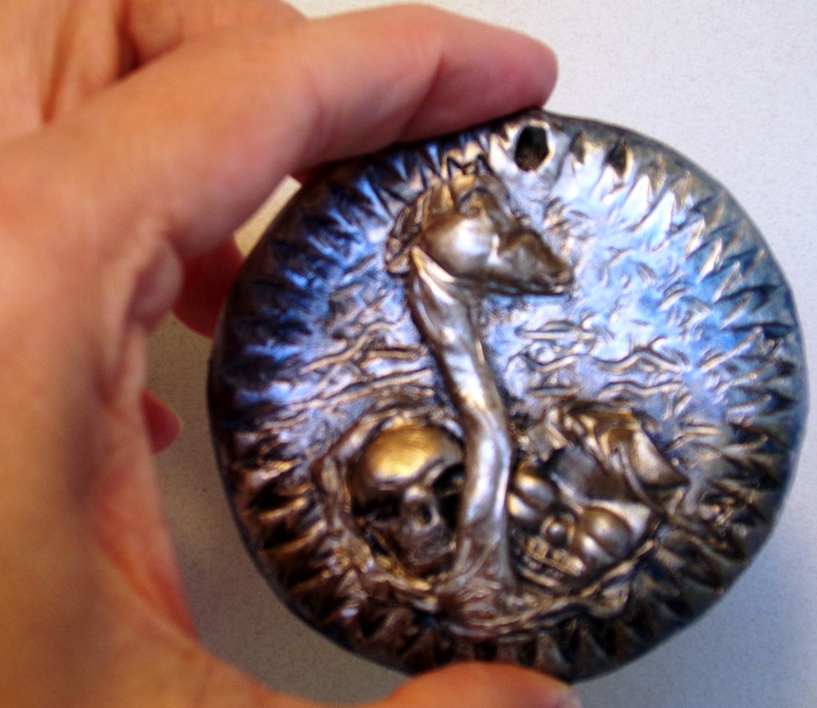 Spectercle T-Swan S-002 Published August 25, 2016 at 1162 × 1008 in Pendants & Medallions ← Previous Next → Spectercle T-Swan S-002 – 2016 – Polymer clay – 2 3/4″ Sorry Trumpeter Swan for getting you involved in my name game: Trump-Peter Swan….a wig-wearing fowl floater!